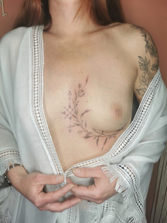 Spécialisée dans le tatouage floral et ornemental, j’exerce mon art dans le respect de chaque individu, quelles que soient son identité de genre, ses croyances ou sa spiritualité.
