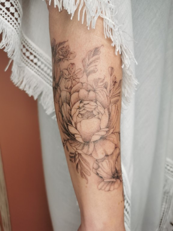 Si tu le souhaites, nous pouvons collaborer pour affiner ce concept et trouver les symboles floraux et les motifs qui correspondent le mieux à ton histoire et à tes aspirations. Ensemble, nous pourrons créer un tatouage unique et chargé de sens, qui reflétera ton individualité et t’accompagnera tout au long de ta vie.